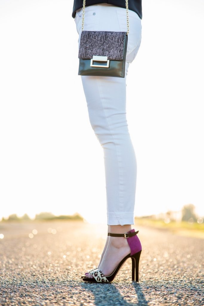 Is it pants (jeans or trousers), a skirt, shorts, or dress type of day? Once you’ve selected the type of day you need to dress for then your base is built from there. If you decide to go with dark-wash jeans, what top will you match it with? A long-sleeve button down, silk blouse, or printed cami because you’re planning on layering a blazer over it?